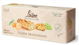 Filone is a leavened fruit cake that tells the story of a family's tradition. Since 1938, Loison Pasticceri has been known for its fine quality desserts, including Panettone, Pandoro and more. In 1969, Alessandro Loison and his wife Bruna opened their own business, thus carrying on the baking tradition of grandfather Tranquillo. Loison’s original recipe for the panfrutto was born. A soft cake featuring candied fruit and raisins, with an almond glaze finish. Today, Dario and his wife Sonia are proud to share their interpretation of Dario’s father's original recipe. Their version of this leavened fruit cake is enriched with premium ingredients and is decorated with scrumptious glazes that meet the taste of modern-day palates. Filone Mandarino is a cake in loaf shape, covered with hazelnuts “Piemonte” PGI icing. The yellow paste is enriched with Ciaculli late mandarin and Sultana raisin.Loison. Filone. Loaf Cake with Ciaculli late Mandarin.Filone MandarinoOne Filone of 450g (15.87oz)Product of Italy