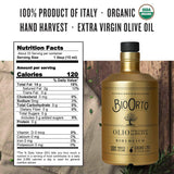 BioOrto Organic Italian "Peranzana" Grand Cru Extra Virgin Olive Oil (500ml/16.9oz) Monovarietal, First Cold Pressed EVOO from Puglia, Italy Non-GMO, Paleo, Vegan, and KetoA PURE GRAND CRU MONOVARIETAL of the “Peranzana” cultivar. An intense gold color with elegant green hues, fine notes from the delicate fruity flavor, sweet and intense, soft on the palate, with a grassy aftertaste, hints of almond with spicy notes.100% ITALIAN ORIGIN EVOO - Produced by the Passalacqua family on land near the foot of the Gargano National Park in the province of Foggia, Apulia in southeast Italy.USDA ORGANIC CERTIFIED – First Cold Pressed – Very Low acidity: 0.1 - 0.2%ELEGANT gold lightproof bottle that makes a perfect gourmet gift and protects the oil. Rich in polyphenols that promote cardiovascular health, antioxidants, vitamins E & K and healthy fatty acids. Paleo, vegan and gluten free!USES AND PAIRINGS: The perfect finish for grilled vegetables, fish, soups, dressings, vinaigrettes and marinades, drizzle on bruschetta, pizza, pasta and salads.