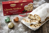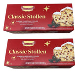 Experience the cherished German holiday tradition with Kuchenmeister Classic Stollen, a 2-pack of 17.6 oz loaves perfect for Christmas celebrations. Crafted in Germany, each stollen features a rich, yeasted bread infused with plump raisins, tangy candied orange and lemon peels, and warming spices. The result is a moist, sliceable treat dusted with confectioners' sugar, ready to share or savor. Ideal for festive tables or as a thoughtful gift, this stollen brings the essence of European baking to your home. Non-GMO ingredients ensure purity, with no artificial additives. Ingredients: Wheat flour, raisins (20%), palm fat, water, candied orange and lemon peels (glucose, orange peels, lemon peels, fructose, sugar), glucose, sugar, canola oil, yeast, invert sugar syrup, lemon juice from concentrate, salt, spices, natural flavors. Allergens: Contains: Wheat. May contain traces of nuts, eggs, and milk. Storage: Keep in a cool, dry place away from direct sunlight. For optimal freshness, consume within 6 weeks of purchase; can be frozen for up to 3 months. Usage: Slice and serve at room temperature—no preparation needed. Pairs well with coffee or mulled wine. Made in Germany. Net weight: 35.2 oz total.Traditional German Christstollen baked in Germany using raisins, candied orange and lemon peels, and select spices for authentic holiday flavorPack of 2. Each 17.6 oz loaf presented in an elegant gift box, ideal for seasonal gifting or family gatherings.Moist yeast dough enriched with natural ingredients and finished with a powdered sugar dustingNon-GMO verified, made without artificial colors or preservatives for quality you can trustContains wheat; may contain traces of nuts, eggs, and milk—always check packaging for full details